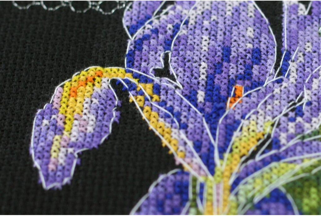 Kreuzstichset mit Zählmuster, japanische Schwertlilien, DIY, unbedruckte Leinwand